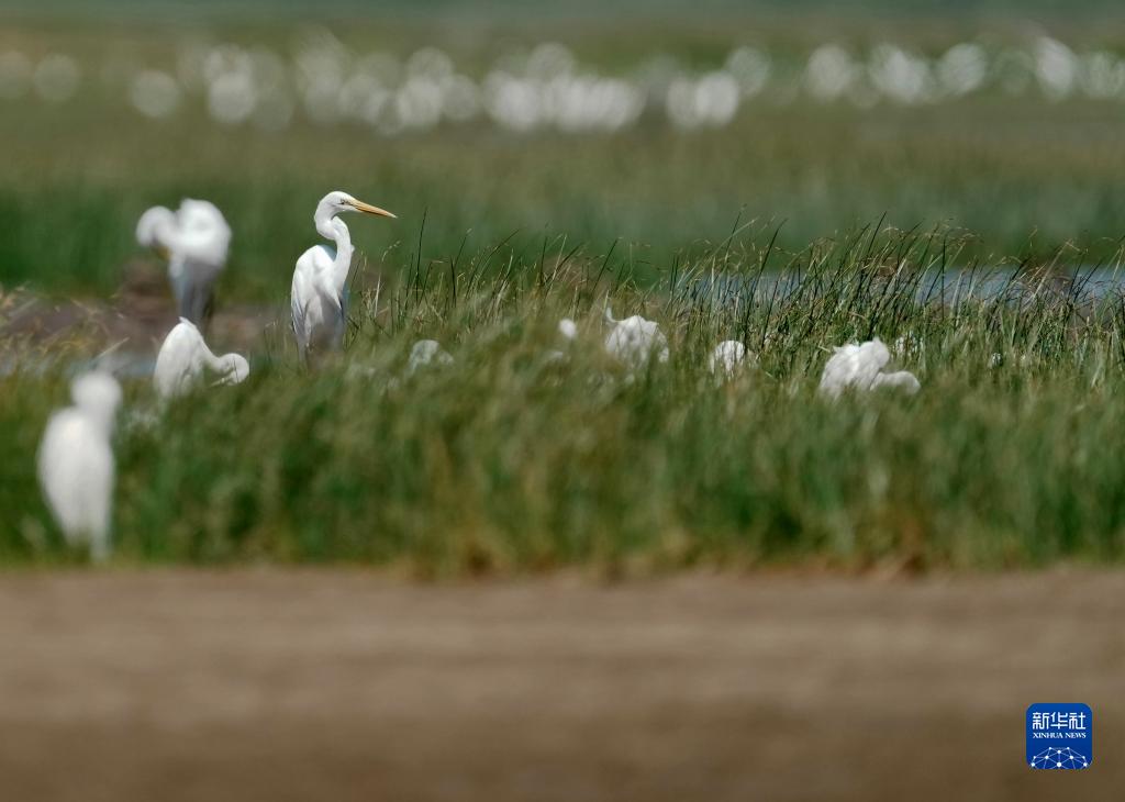 一群白鷺在草叢里歇息(8月25日攝)。
