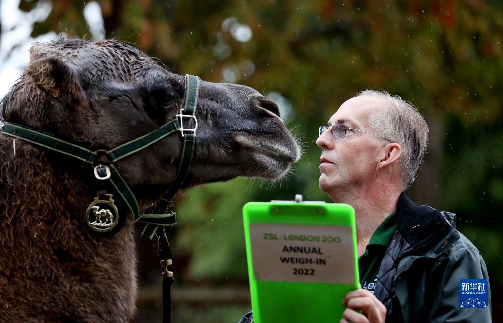 8月25日,在英國倫敦動物園,工作人員為一頭駱駝體檢。