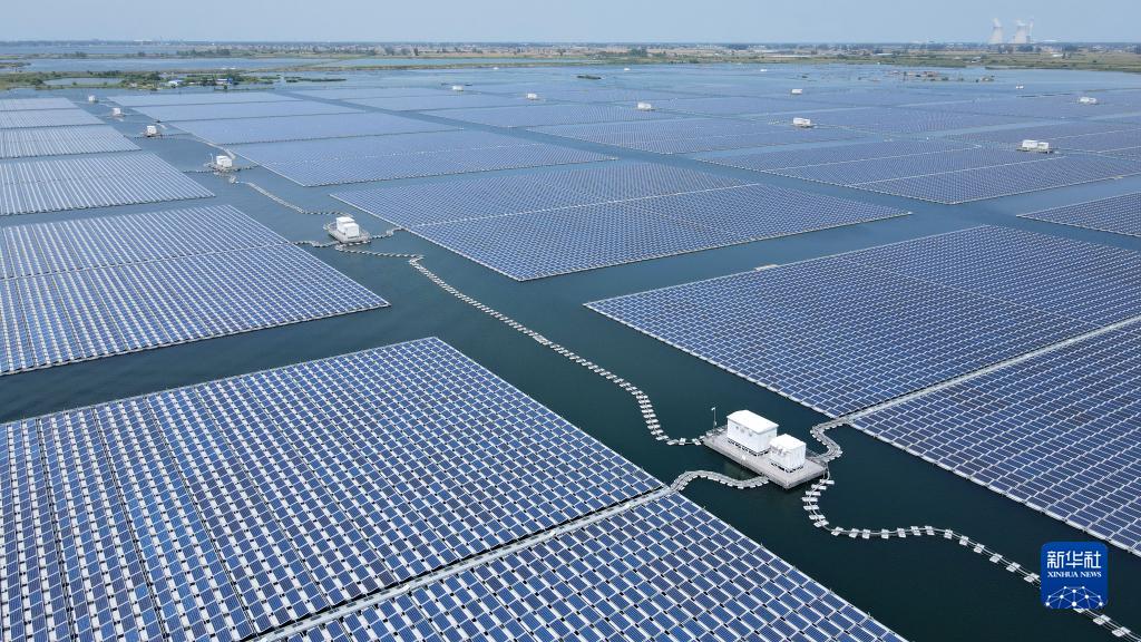 8月25日拍攝的潁上縣毛圩水上光伏電站(無人機照片)。