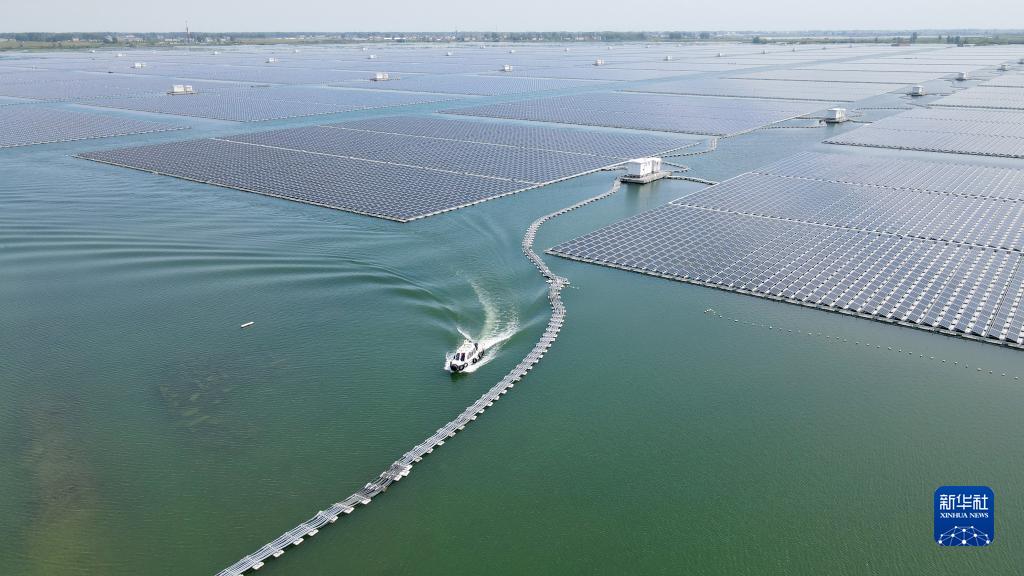 8月25日拍攝的潁上縣毛圩水上光伏電站(無人機照片)。