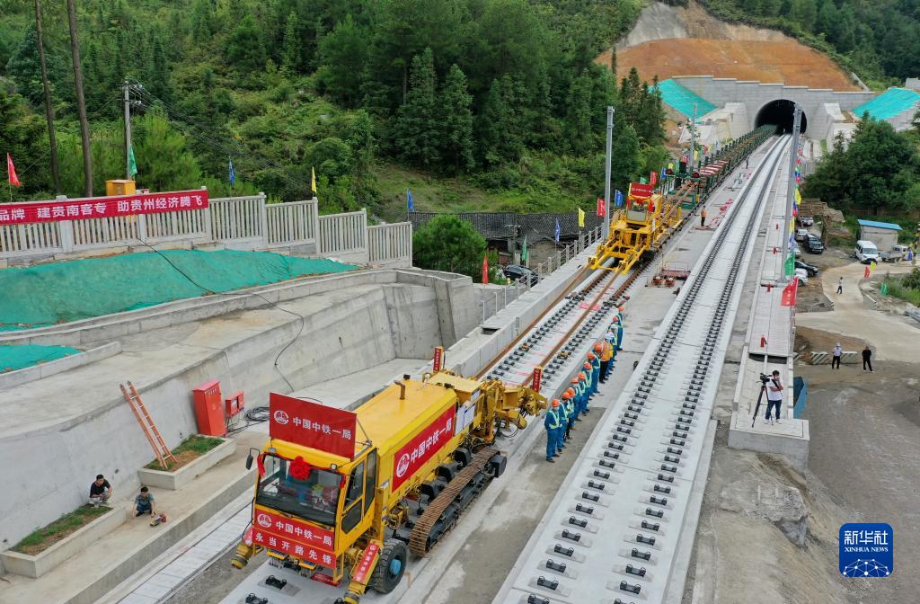 當日,隨著一段500米長鋼軌鋪設在貴州省都勻市境內的新安雙線大橋上,貴陽至南寧高速鐵路貴州段進入全線鋪軌階段。