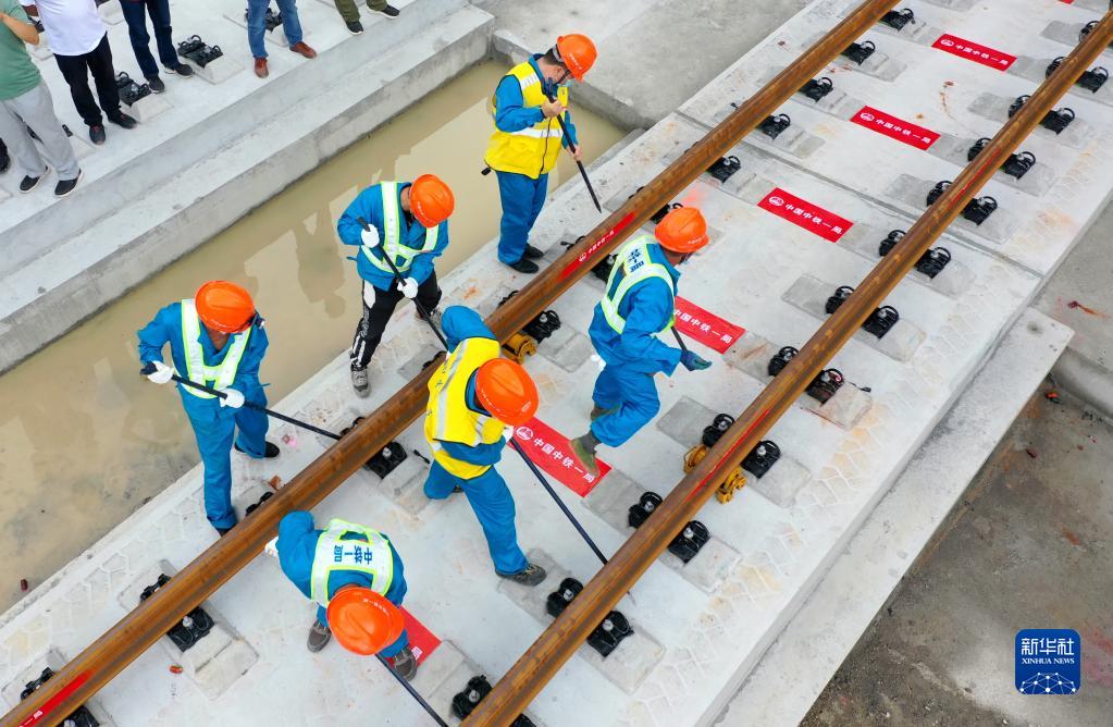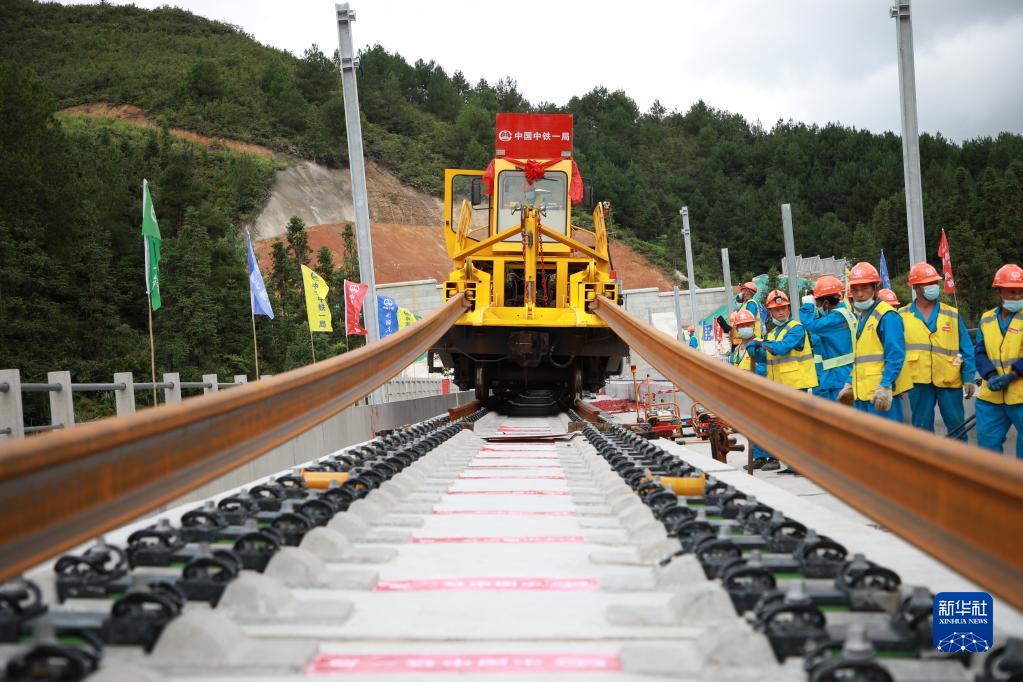 8月26日,中鐵一局建設者們在進行鋪軌施工。