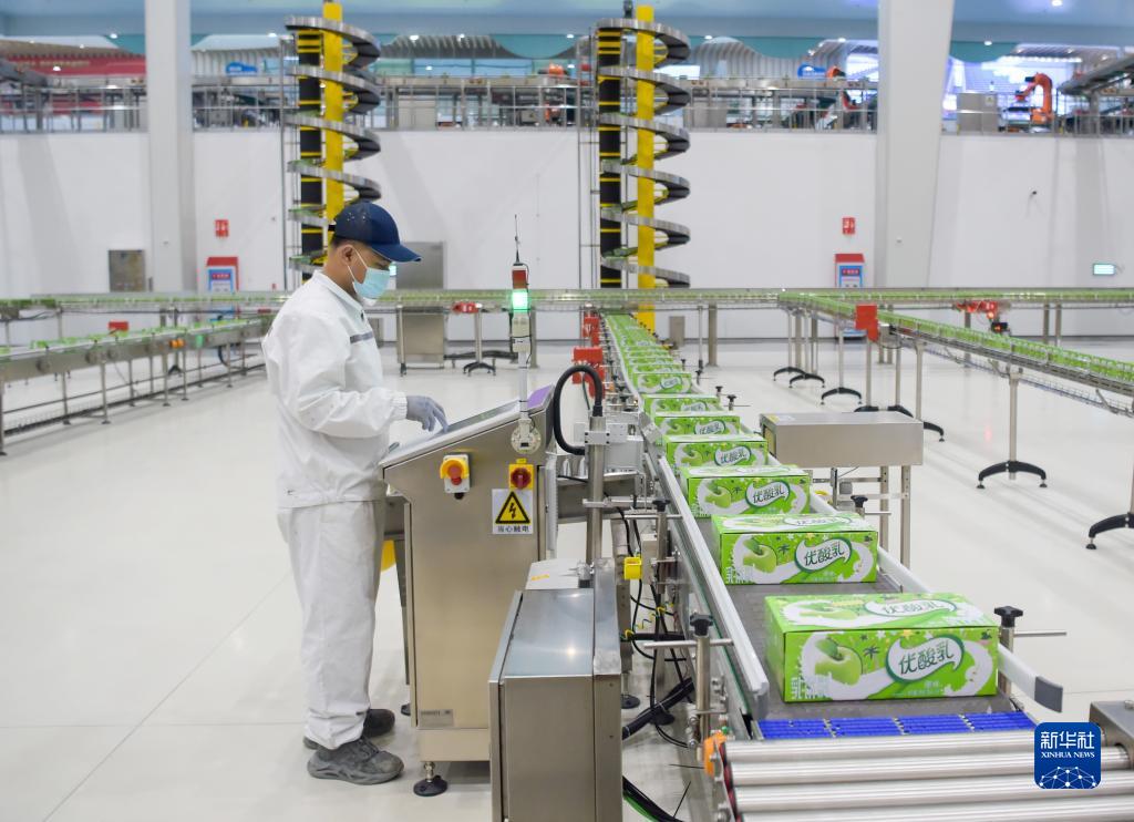 8月25日,在位于呼和浩特市的伊利現代智慧健康谷液態奶全球智造標桿基地,工人在生產線上作業。新華社記者 李志鵬 攝