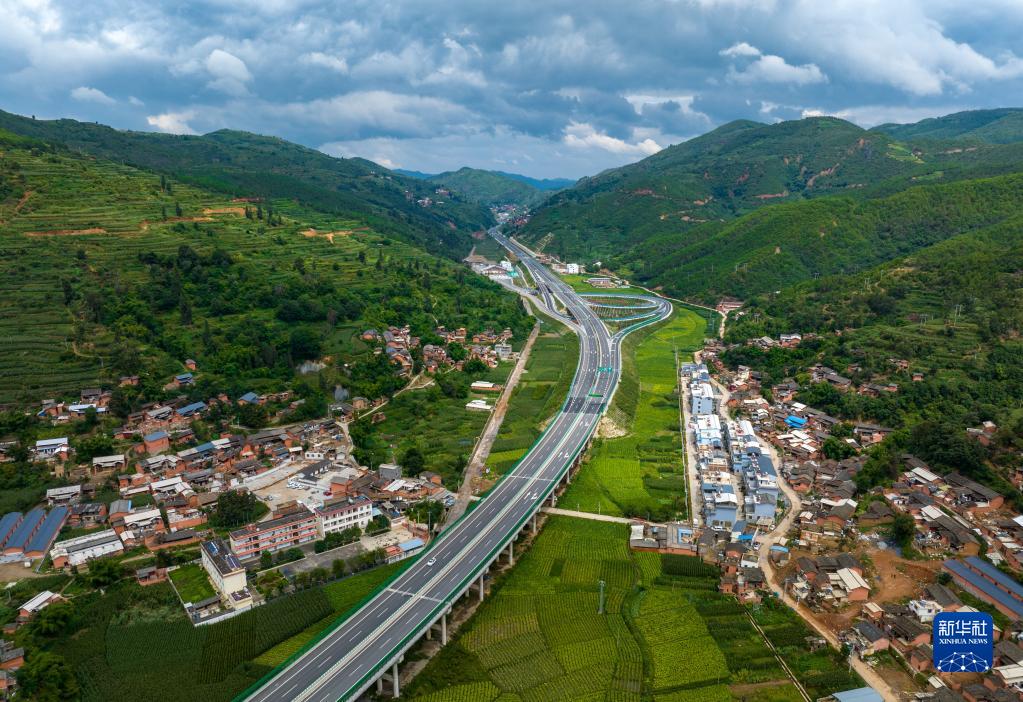 8月26日,車輛行駛在玉楚高速上(無人機照片)。
