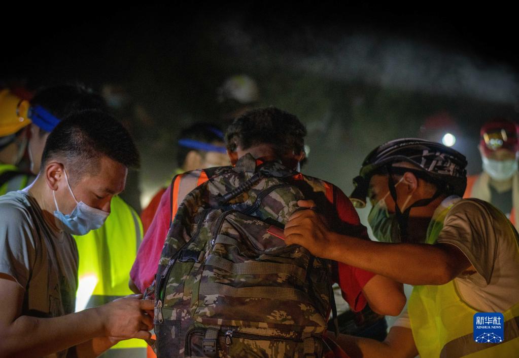 8月26日凌晨,物資站點的志愿者為即將上山的“摩托大軍”志愿者準備物資。