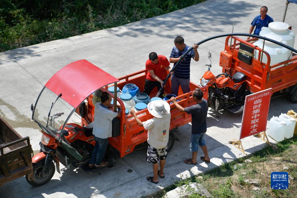 8月25日,在遵義市務川縣分水鎮天山村,當地政府組織村民在抗旱救災臨時集中取水點取水。