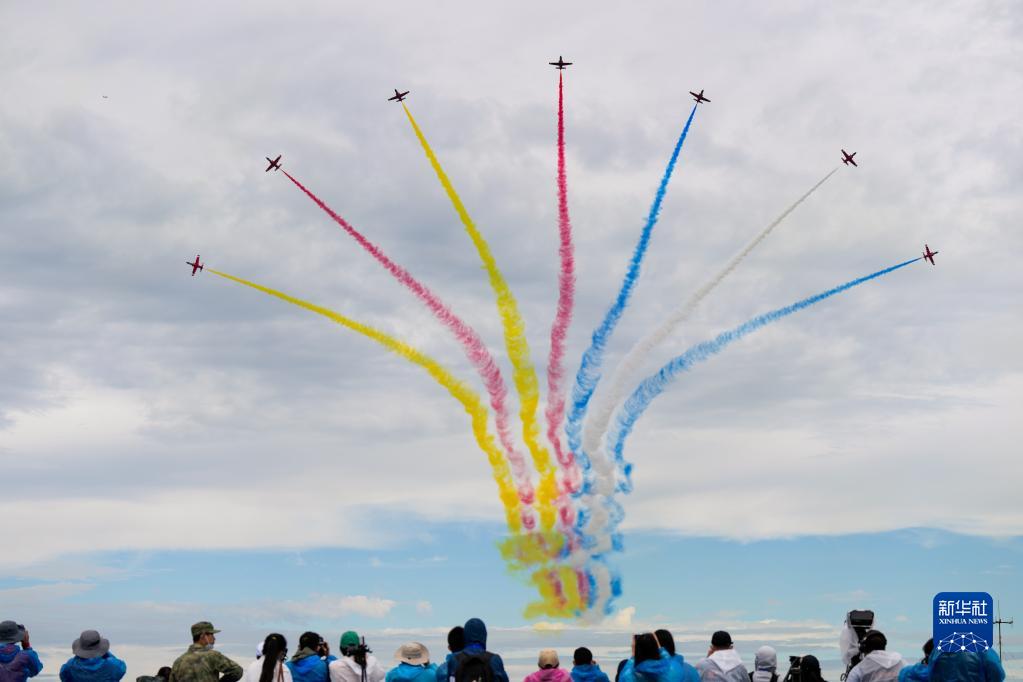 8月26日,在空軍航空開放活動暨長春航空展上,空軍航空大學“紅鷹”飛行表演隊進行飛行表演。
