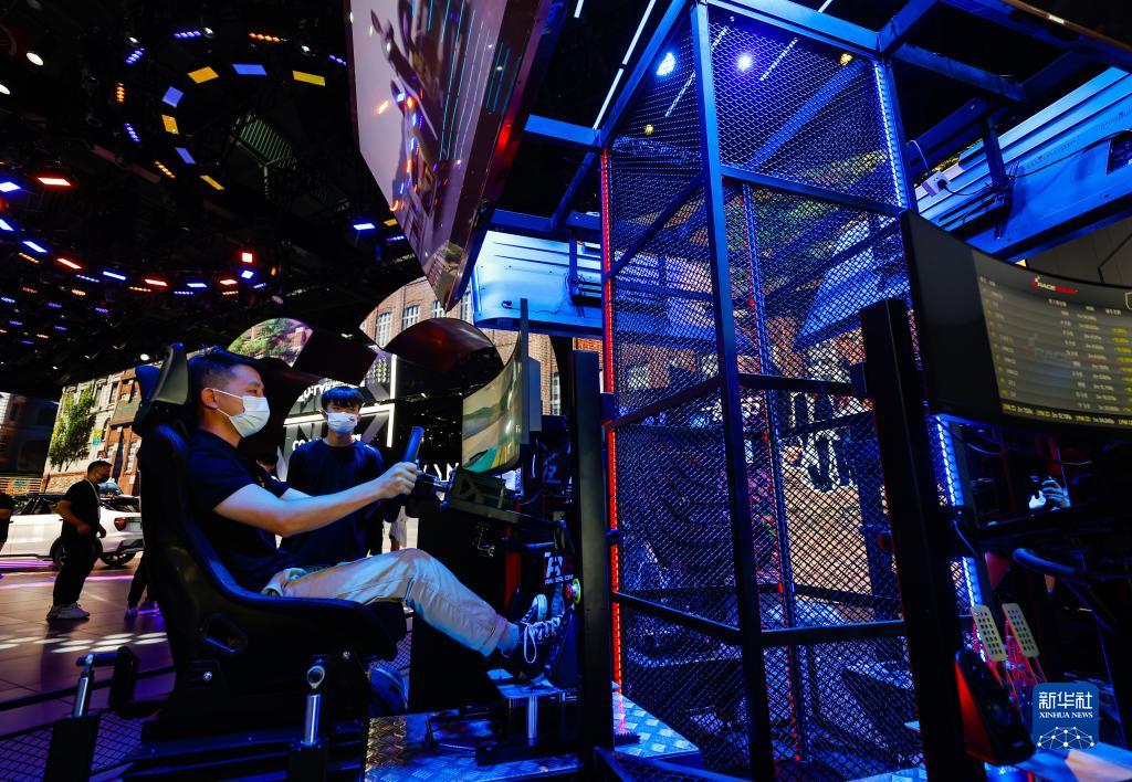8月26日,在第二十五屆成都國(guó)際汽車展覽會(huì)上,參觀者體驗(yàn)賽車游戲。
