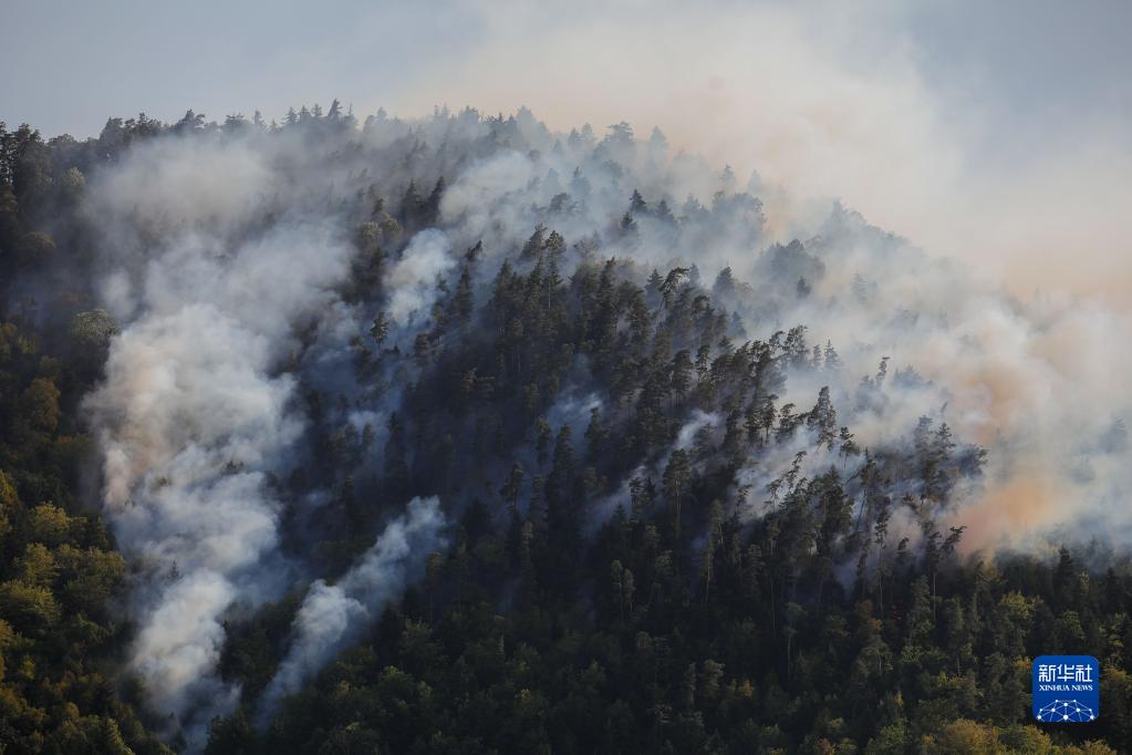 8月24日,格魯吉亞中部博爾若米附近山區濃煙滾滾。