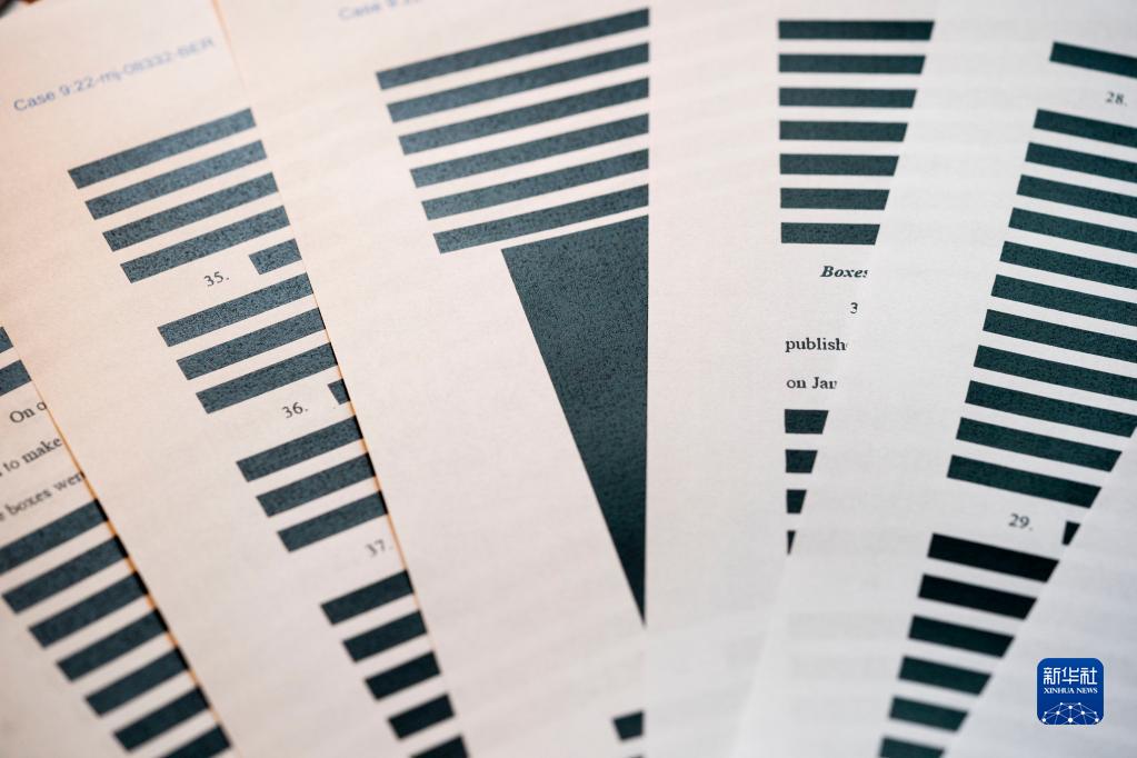 這是8月26日拍攝的美國聯(lián)邦調(diào)查局申請搜查前總統(tǒng)特朗普住所海湖莊園時向法院提交書面證詞的部分內(nèi)容。