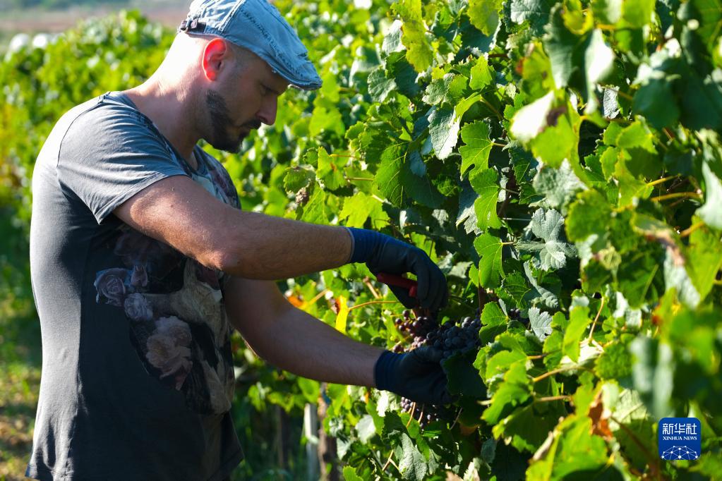 8月26日,在馬耳他莫斯塔,一名男子在葡萄園里采摘葡萄。