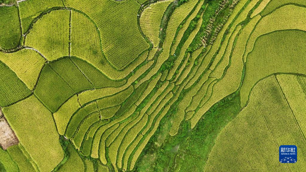 初秋,貴州省貴陽市開陽縣禾豐鄉馬頭村近千畝優質稻谷長勢喜人,田園、村莊、河流、鄉村公路組成一幅貴州高原獨特的田園豐收畫卷。