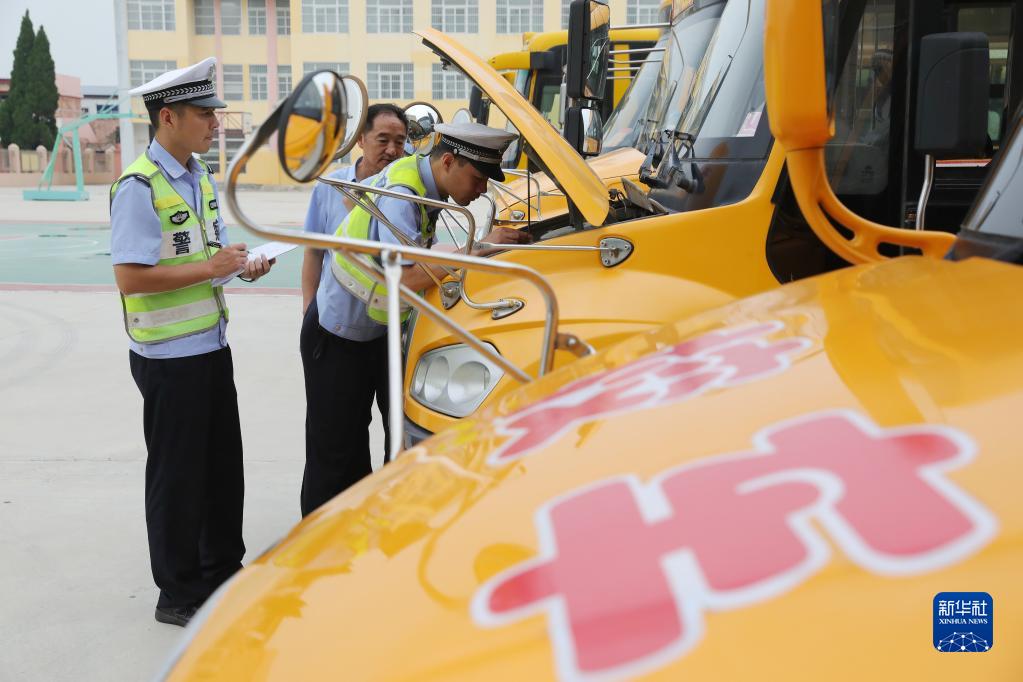 新學(xué)期開(kāi)學(xué)在即,安徽省淮北市開(kāi)展校車安全專項(xiàng)大檢查,組織交警和相關(guān)技術(shù)人員對(duì)轄區(qū)校車信息資料、校車司機(jī)駕駛資格、校車安全性能、防疫措施和隨車配備的安全應(yīng)急器材設(shè)備等逐一檢查,消除校車安全隱患,確保學(xué)生乘車安全。