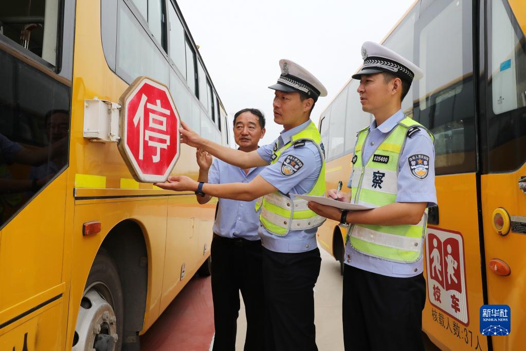 新學期開學在即,安徽省淮北市開展校車安全專項大檢查,組織交警和相關技術人員對轄區校車信息資料、校車司機駕駛資格、校車安全性能、防疫措施和隨車配備的安全應急器材設備等逐一檢查,消除校車安全隱患,確保學生乘車安全。