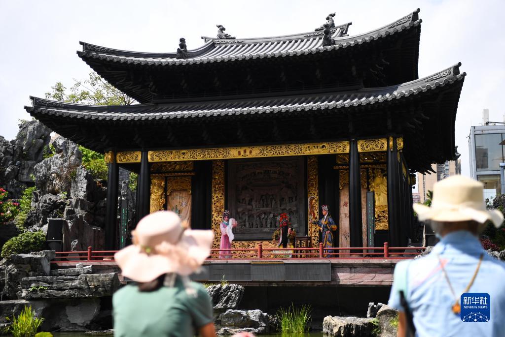 2022年8月21日,在位于廣州永慶坊的粵劇藝術(shù)博物館,游客觀看粵劇表演。