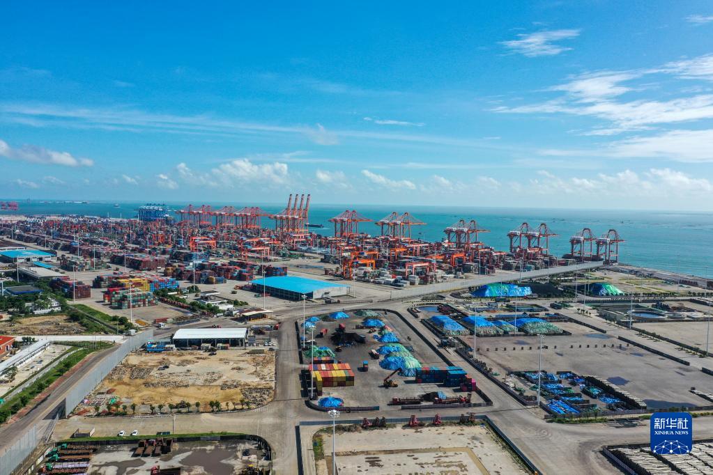 這是8月27日拍攝的位于平陸運河出海口附近的北部灣港欽州港區大欖坪作業區(無人機照片)。