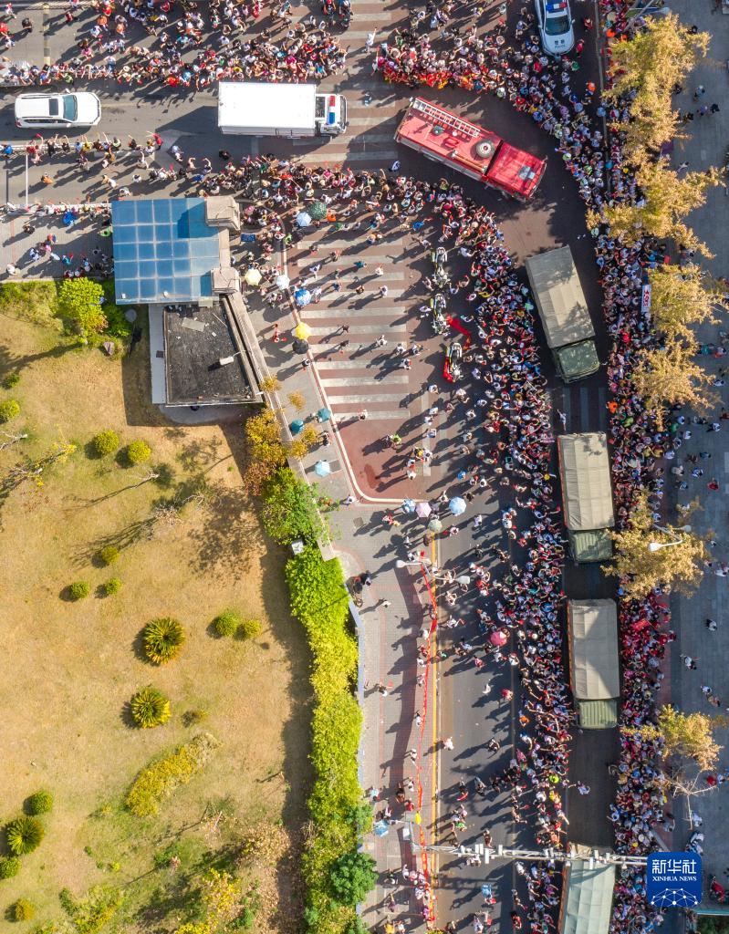 8月28日,在重慶市北碚區,群眾自發來到道路兩旁歡送森林消防隊員(無人機照片)。