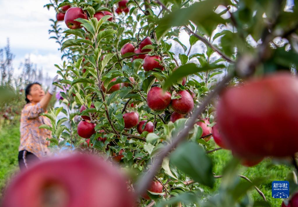 8月28日,農戶在大理市喜洲鎮大本農業蘋果產業研發基地采摘蘋果。