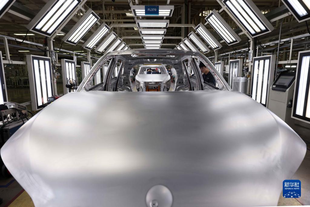8月28日,在合肥經(jīng)濟技術(shù)開發(fā)區(qū)的一家新能源汽車生產(chǎn)企業(yè),工人在生產(chǎn)車間內(nèi)忙碌。