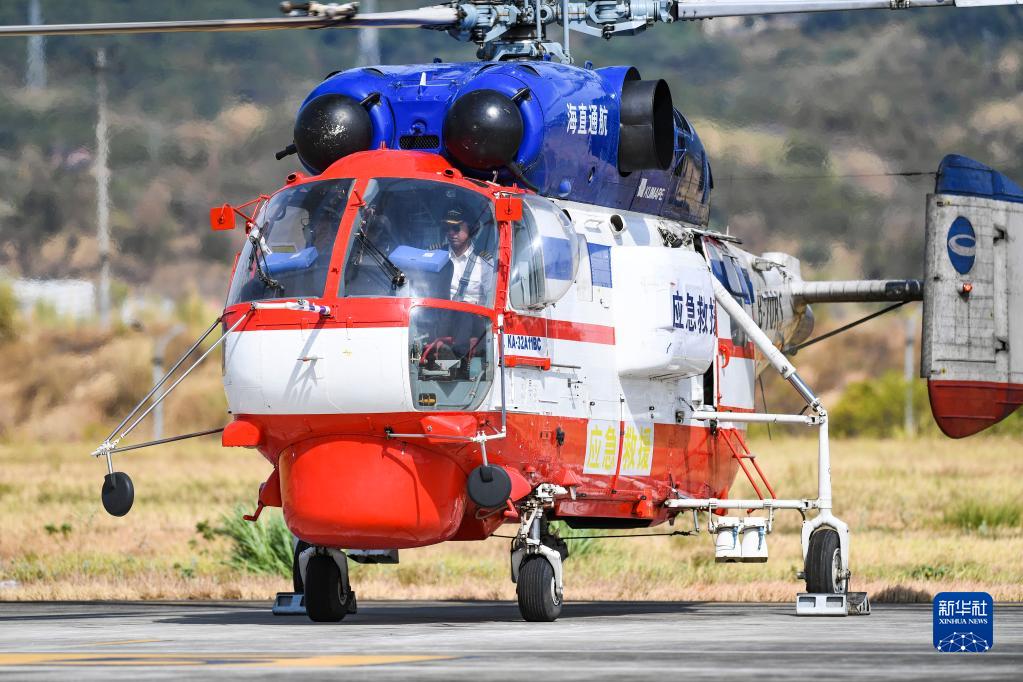 8月28日,在重慶龍興通用機場,來自四川廣安的一架救援直升機準備起飛返回。