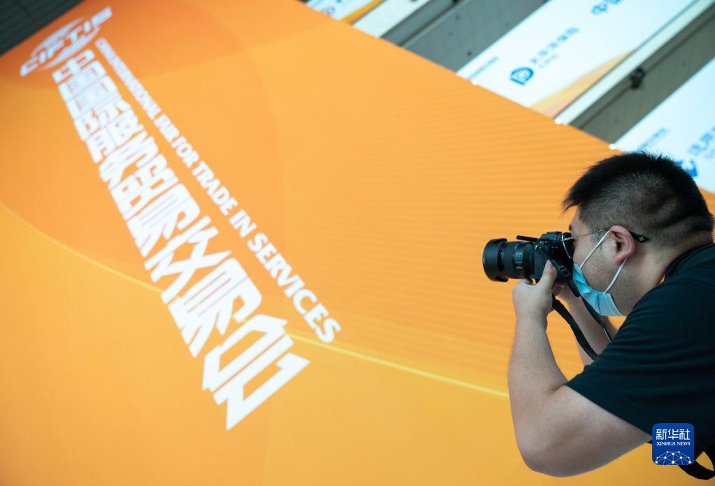 8月28日,在國家會議中心,記者在服貿會媒體探營活動中拍攝照片。