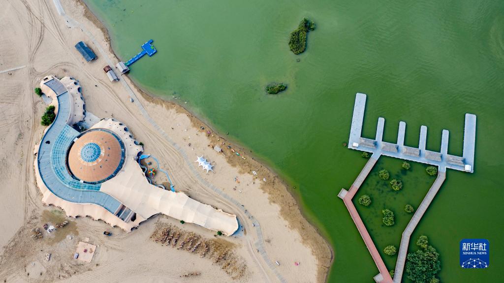 這是8月28日拍攝的寧夏沙湖景區(無人機照片)。
