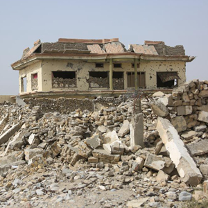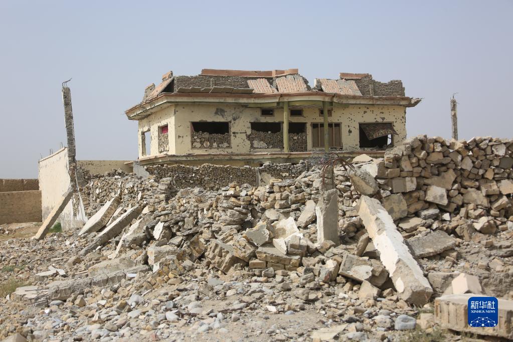 這是8月23日拍攝的阿富汗南部赫爾曼德省桑金地區遭到美軍空襲后留下的廢墟。