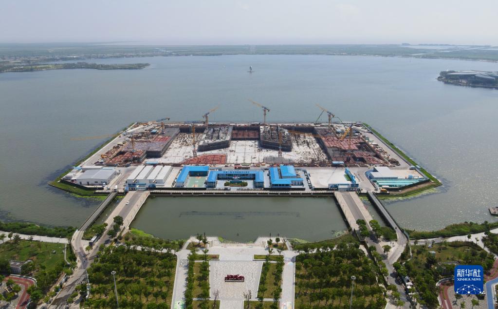 8月29日,空中俯瞰臨港西島金融中心項目工地(無人機照片)。