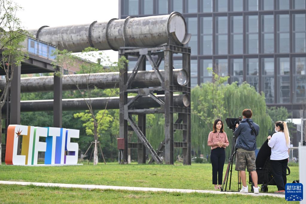 8月29日,在服貿(mào)會(huì)首鋼園區(qū),記者在媒體探營活動(dòng)中進(jìn)行拍攝報(bào)道。