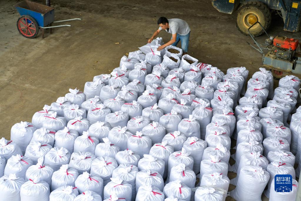8月25日,在遵義市務川縣分水鎮紅明村,工人在有機肥加工廠生產有機肥,為秋季補種作準備。