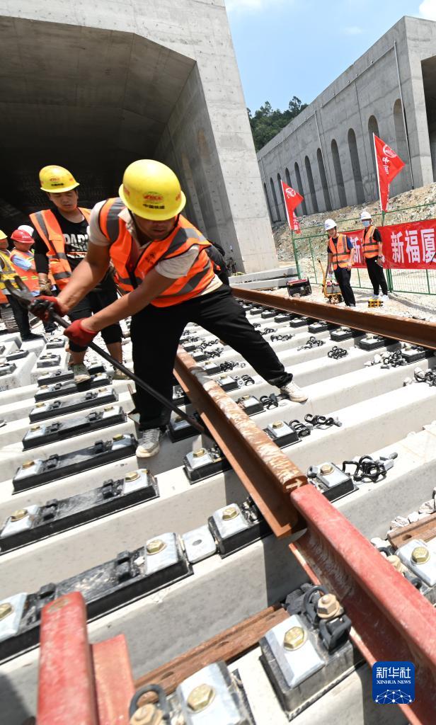 當(dāng)日,在新建福州—廈門鐵路廈門北站施工現(xiàn)場,隨著最后一組500米長鋼軌順利鋪設(shè),我國首條跨海高鐵——新建福(州)廈(門)鐵路鋪軌施工全線貫通。
