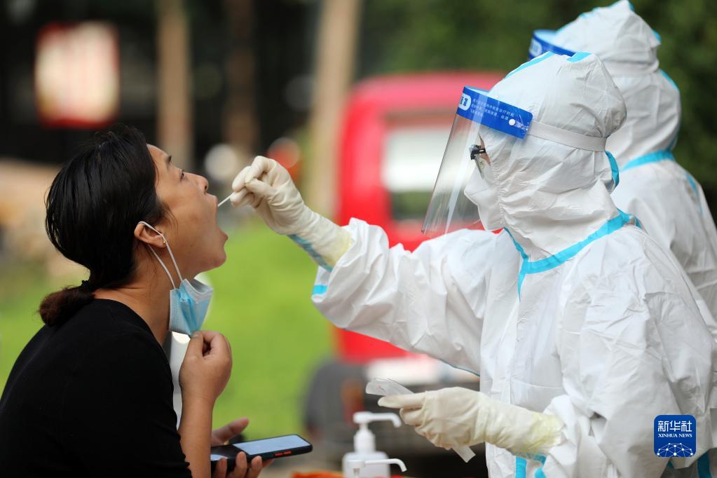8月30日,在石家莊市眾美綠都小區(qū)核酸采樣點,市民接受核酸采樣。