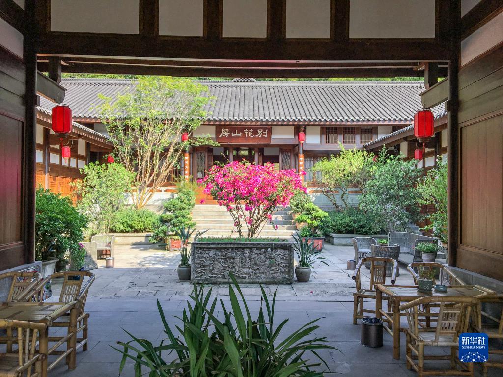 這是7月28日在重慶市巴南區(qū)天星寺鎮(zhèn)芙蓉村拍攝的依托清代“廖家大院”舊址上復(fù)原建造的民宿“別花山房”。
