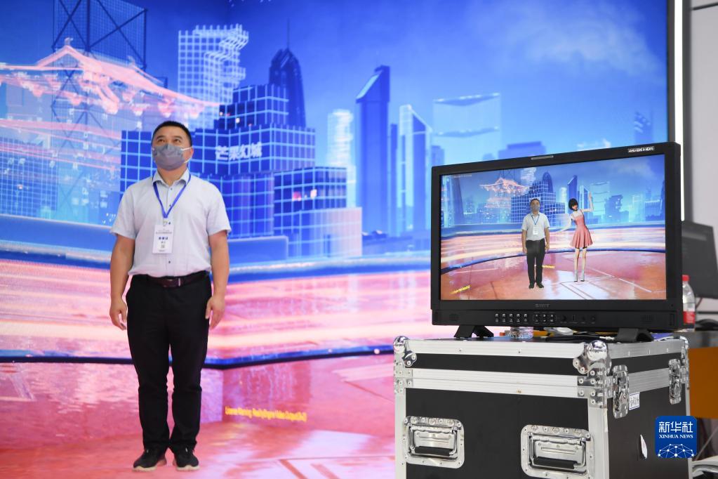 8月30日,參觀者在“新技術(shù) 融創(chuàng)新高地”2022中國(guó)新媒體技術(shù)展上體驗(yàn)沉浸式XR虛擬錄制系統(tǒng)。