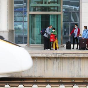 8月31日,旅客在寶蘭高鐵定西北站站臺上準備乘車出行。
