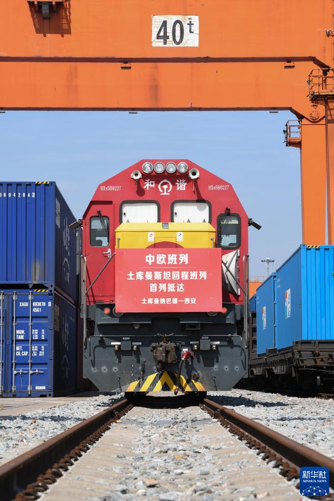 該趟專列所載貨物共計42個集裝箱,重850噸。專列采取“海鐵聯運”的方式,由土庫曼巴希港乘船出發,經哈薩克斯坦阿克套港換裝鐵路,由霍爾果斯口岸入境中國,最終抵達西安國際港站。