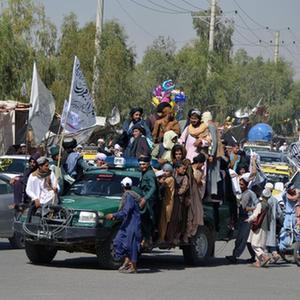 8月31日,時值美軍撤離阿富汗一周年之際,人們走上阿富汗坎大哈省街頭。