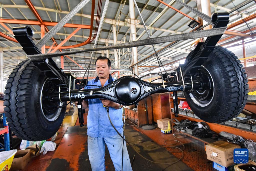 8月31日,在山東省青州市經濟開發區,一家農用車制造企業的工人在車間內忙碌。