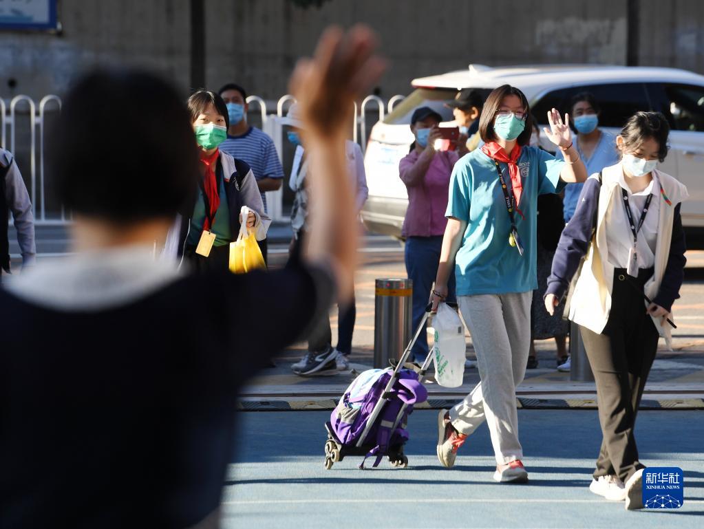 9月1日,在北京十一晉元中學,學生有序進入校園。