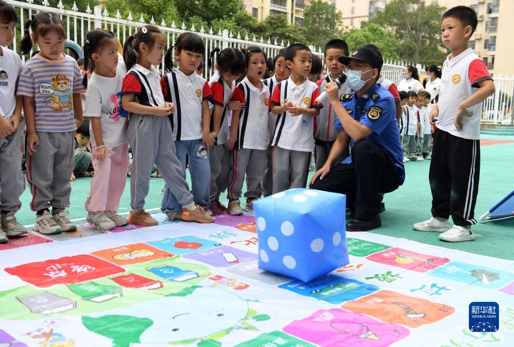 9月1日,安徽省合肥市包河區常青街道淝南社區淝南家園幼兒園小朋友在開學第一課上參與垃圾分類環保小游戲。