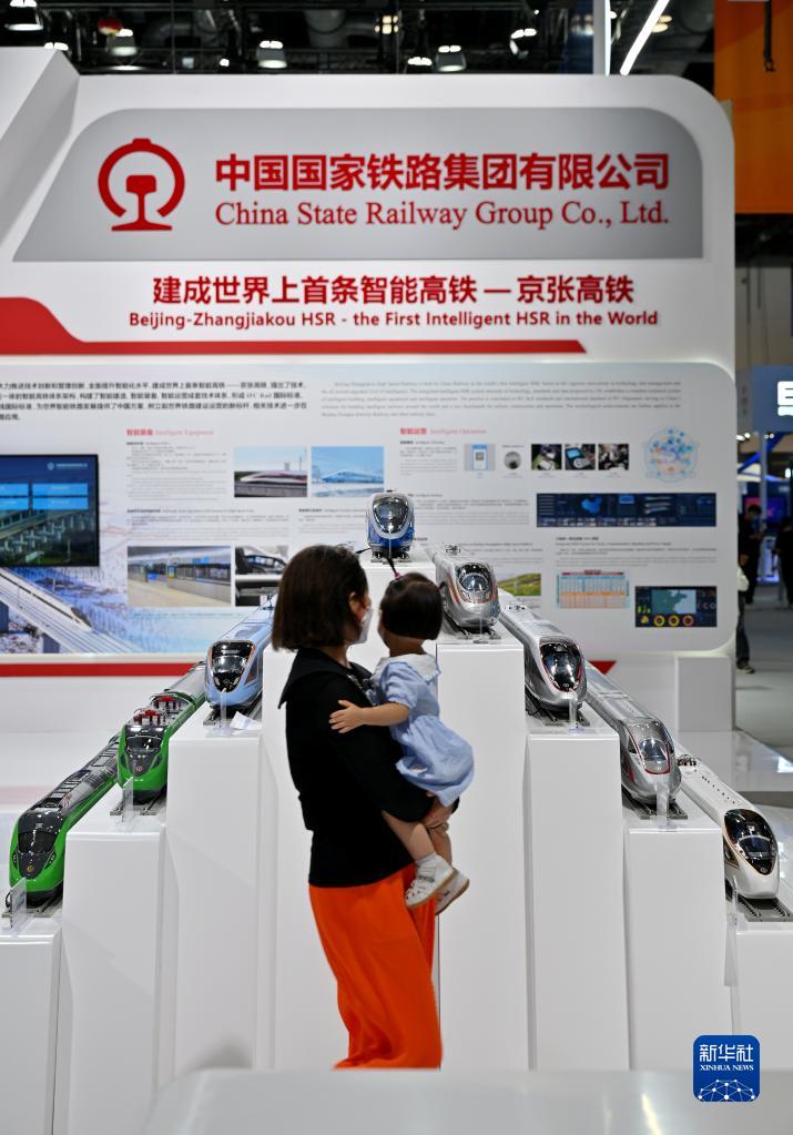9月1日,觀眾在國家會(huì)議中心內(nèi)的國鐵集團(tuán)展臺(tái)觀看智能動(dòng)車組模型。