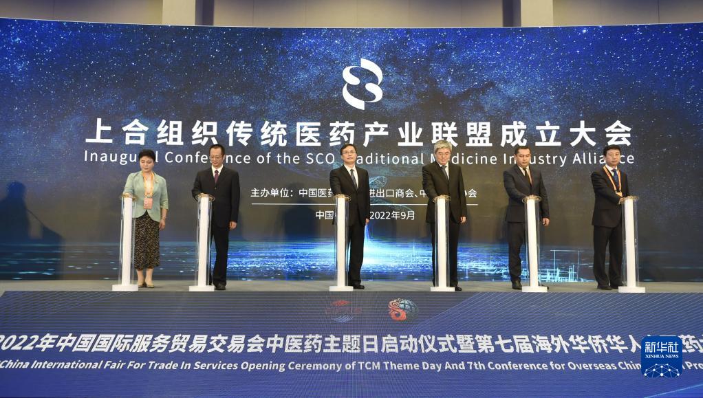 9月1日,與會(huì)嘉賓在活動(dòng)現(xiàn)場(chǎng)出席上合組織傳統(tǒng)醫(yī)藥產(chǎn)業(yè)聯(lián)盟成立儀式。新華社記者 魯鵬 攝