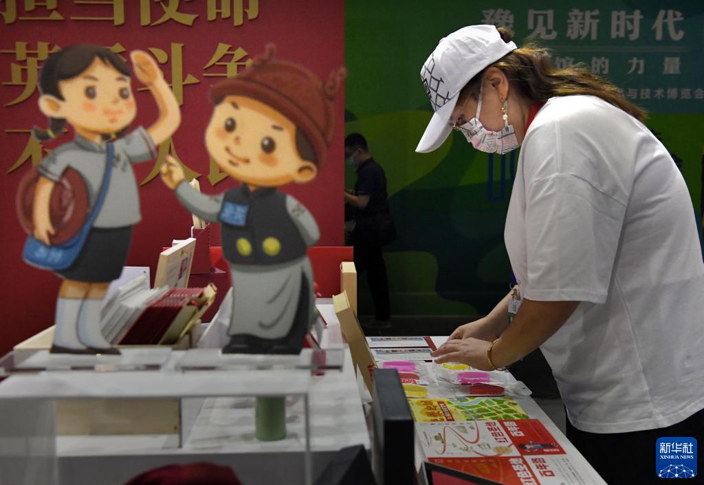 9月1日,參觀者在“博博會”中共一大紀念館展區觀看展品。