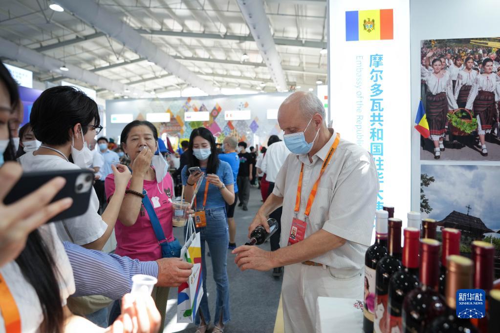 9月1日,觀眾在2022年服貿會首鋼園區的摩爾多瓦共和國展位品嘗紅酒。