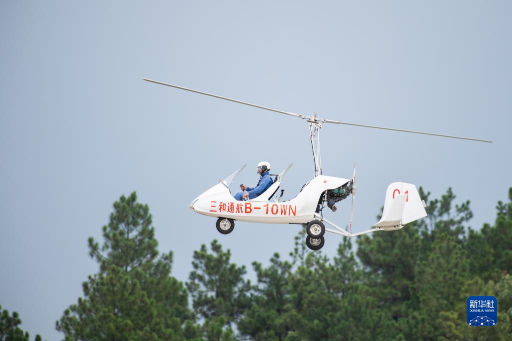 9月1日,在湖南株洲蘆淞機(jī)場(chǎng),旋翼機(jī)飛行員進(jìn)行飛行表演。
