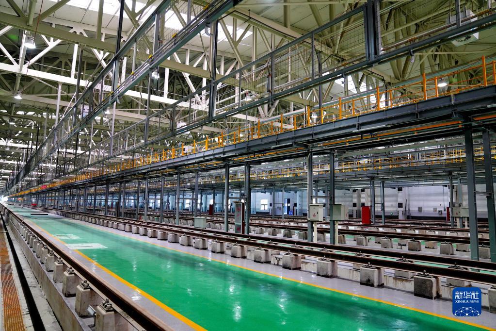 9月1日拍攝的濟(南)鄭(州)高鐵濟南站動客車整備所內部場景。新華社記者 郭緒雷 攝