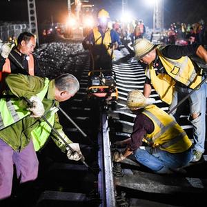 9月1日凌晨,施工人員在重慶鐵路樞紐東環線磨心坡站作業。當日凌晨,由中鐵八局承建的重慶鐵路樞紐東環線磨心坡站信號設備倒替施工等作業項目順利完成,標志著東環線引入既有襄渝線主體工程完工,為東環線全線開通提供了堅實保障。重慶鐵路樞紐東環線串聯了重慶北站、重慶江北國際機場等綜合交通樞紐,是以貨運為主、兼顧沿線客運的客貨共線鐵路,對完善重慶客貨運布局有重要意義。新華社記者 王全超 攝