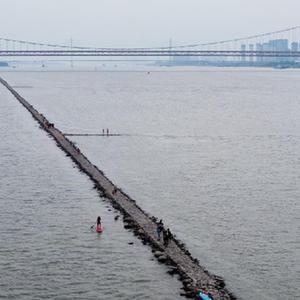 近日,長江武漢段水位持續降低,一條江心小道露出江面。截至9月1日20時,長江漢口站水位為14.67米,遠低于歷史同期平均水位。