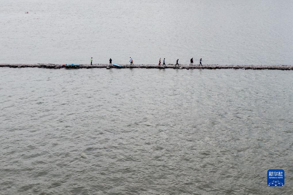 9月1日,市民走在江心小道上(無人機照片)。