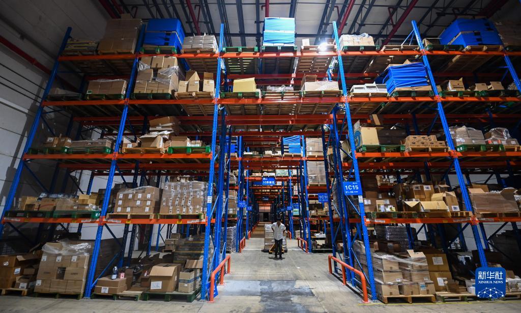 9月2日,在杭州綜合保稅區一家跨境保稅倉內,工作人員在搬運跨境電商保稅進口商品。“數字綜保”綜合服務平臺提升了跨境保稅倉貨物的流轉效率,為企業節省時間和費用。